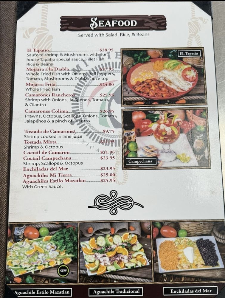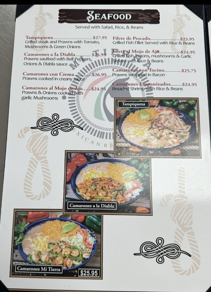 Shrimp and mushrooms sautéed with special tapatio house sauce and a side of fish fillet. Served with rice and beans